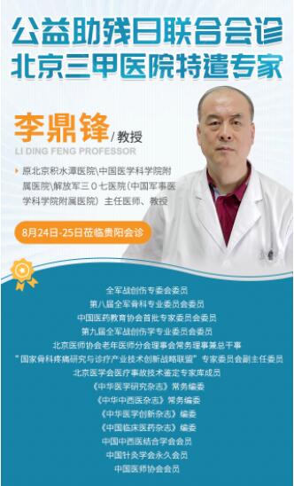 活动期间 ,原北京积水潭医院、中国医学科学院附属医院、解放军三0七医院(中国军事医学科学院附属医院)主任医师李鼎峰教授,将亲临贵阳,联合贵阳中医风湿病医院风湿痛风科、检验科、康复科等专家医生为广大风湿骨病疑难病症患者展开MDT多学科会诊,联袂制定针对性的解决骨关节或肌肉疼痛方案,并且评估病情进展程度和可能存在的致残风险。另外,针对贫困和残疾人风湿骨病患者,贵阳中医风湿病医院将采取“一助一”公益爱心帮扶措施,缓解部分因病致贫,因病致残的现状。今后医院还将继续落实“公益助残爱心送医”举措,努力为推进健康中国,健康贵州建设贡献一份力量。